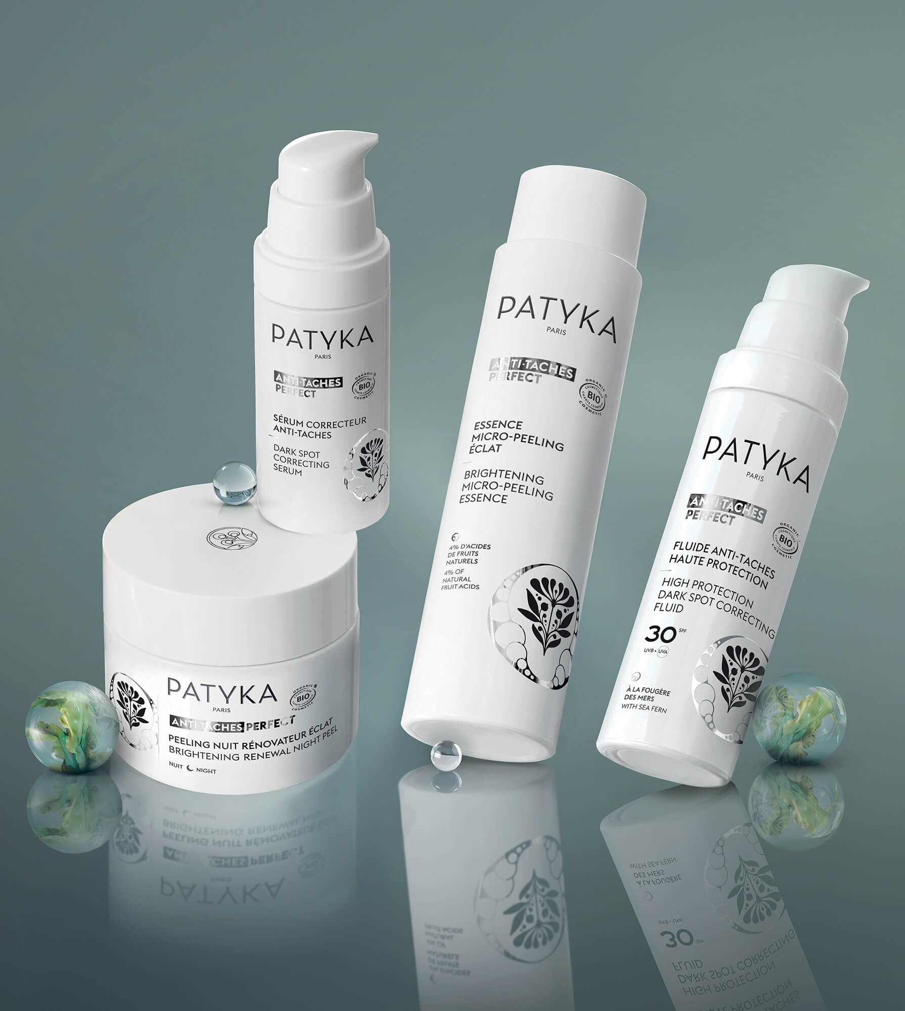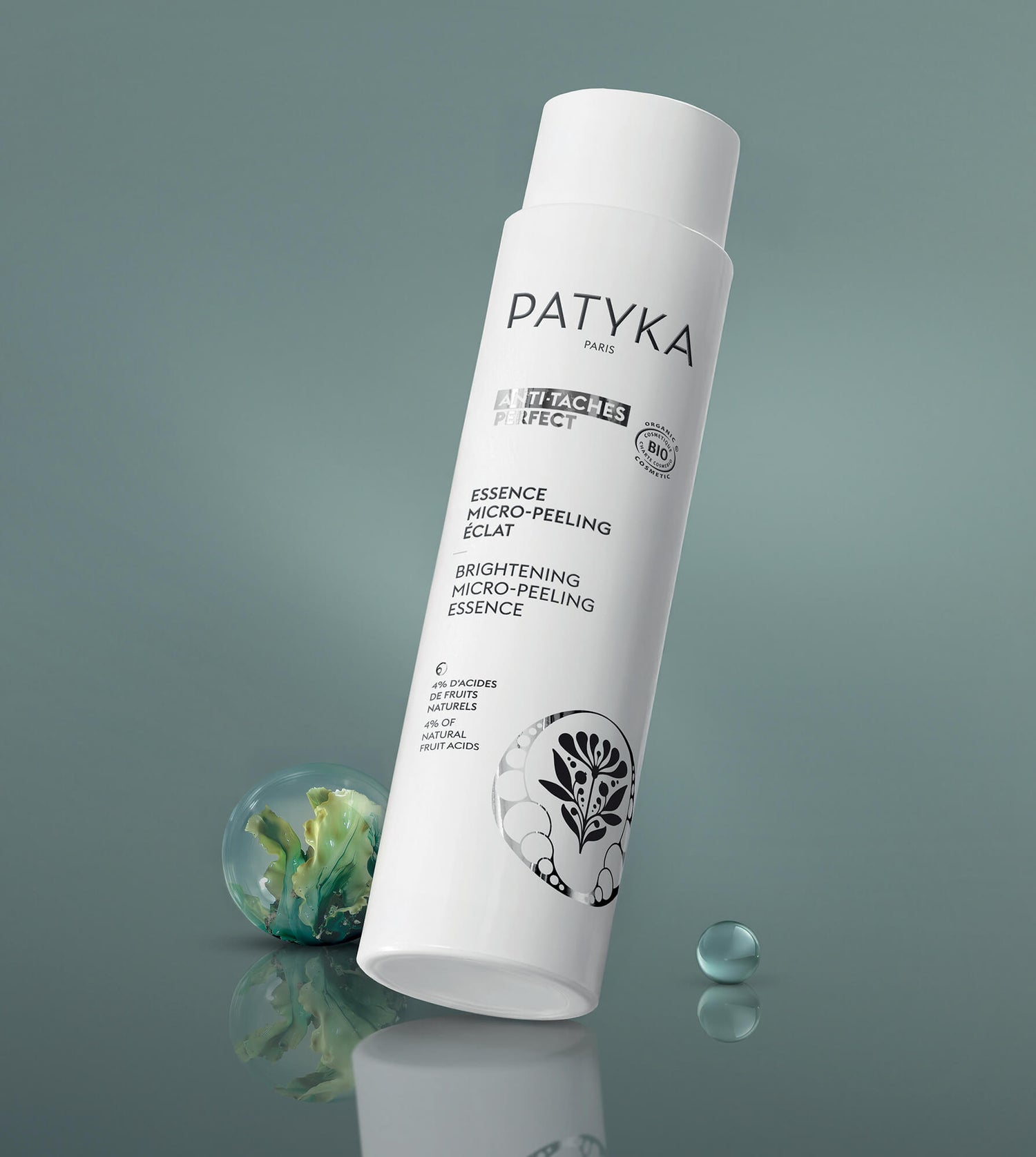 Por ello, la investigación avanzada de PATYKA ha desarrollado la Esencia Micro-Peeling Luminosidad, altamente concentrada en Ácidos Frutales Naturales y Helecho Marino. Este cuidado, que se aplica todas las noches, estimula la renovación celular para reducir el tamaño y la intensidad de las manchas y alisa la piel mientras devuelve la luminosidad a la piel.