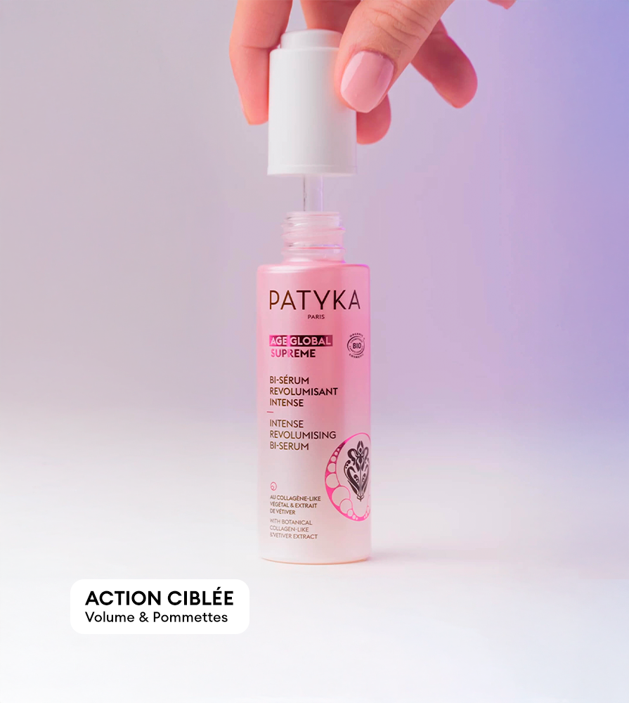 Su mérito: gracias a un Colágeno-like vegetal y a un extracto de Vetiver, este serum bifásico realza los pómulos, restaura los volúmenes del rostro y redefine sus contornos.
