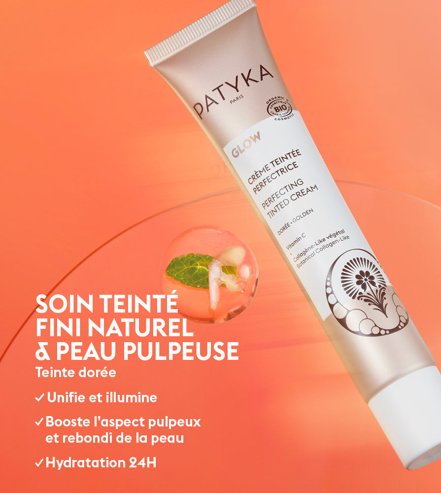 Parce que le stress (émotionnel et oxydatif) impacte la qualité et l’éclat de la peau (qui devient terne, grise et plus rugueuse) PATYKA créée GLOW : une collection de soins hybrides à la double action soin/couleur et peau/cerveau qui restaurent sa beauté naturelle, parmi lesquels la Crème Teintée Perfectrice.