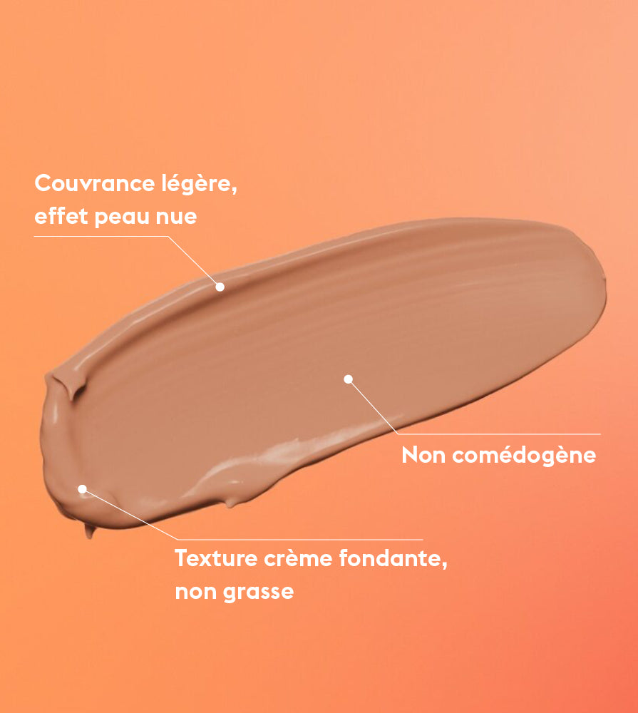 Couvrance légère et fini naturel. Non comédogène.