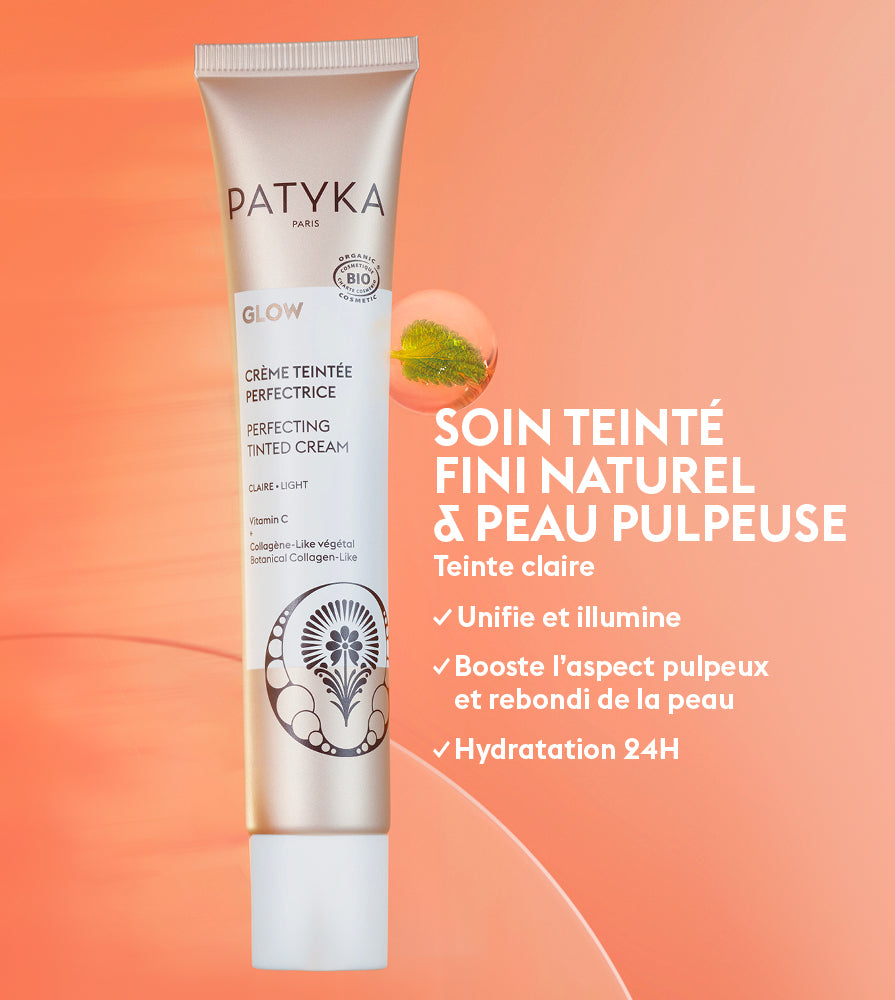 Parce que le stress (émotionnel et oxydatif) impacte la qualité et l’éclat de la peau (qui devient terne, grise et plus rugueuse) PATYKA créée GLOW : une collection de soins hybrides à la double action soin/couleur et peau/cerveau qui restaurent sa beauté naturelle, parmi lesquels la Crème Teintée Perfectrice.