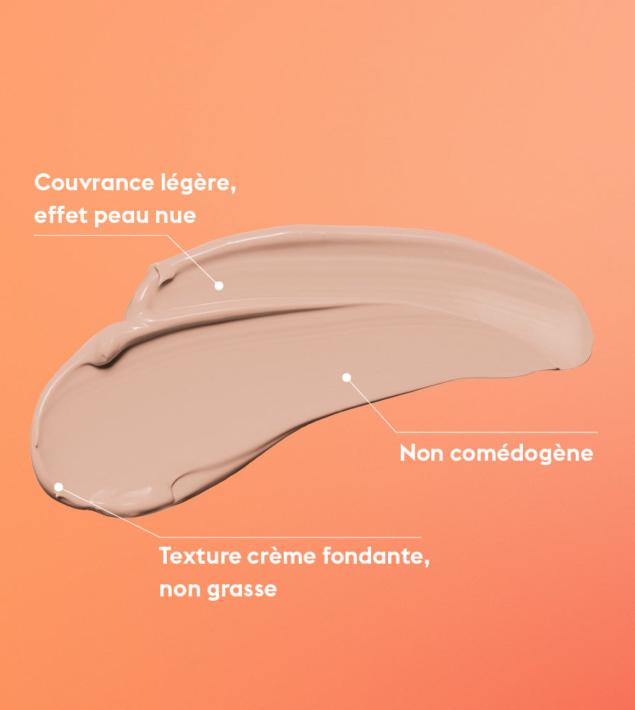 Couvrance légère et fini naturel. Non comédogène.