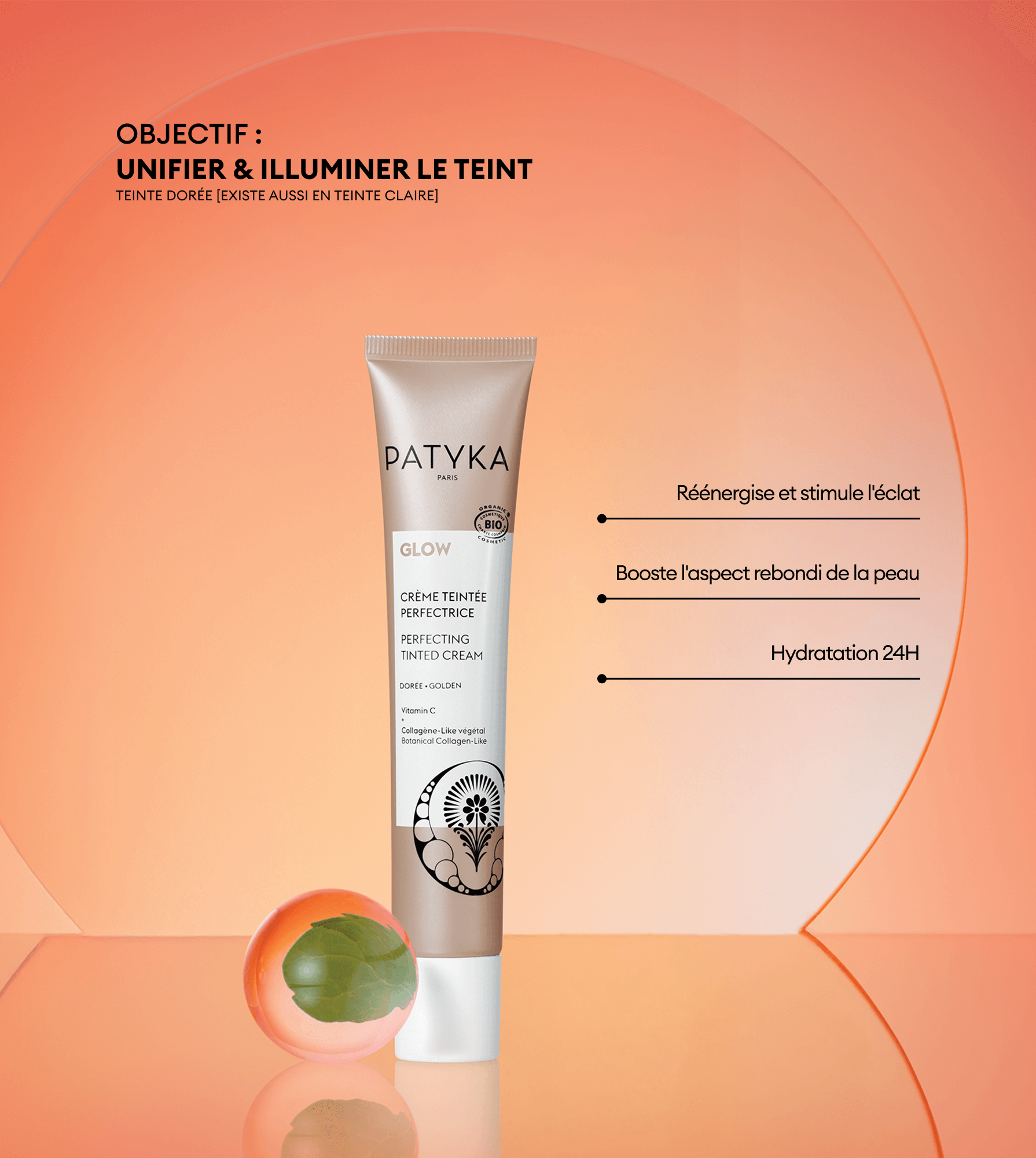 Parce que le stress (émotionnel et oxydatif) impacte la qualité et l’éclat de la peau (qui devient terne, grise et plus rugueuse) PATYKA créée GLOW : une collection de soins hybrides à la double action soin/couleur et peau/cerveau qui restaurent sa beauté naturelle, parmi lesquels la Crème Teintée Perfectrice.
