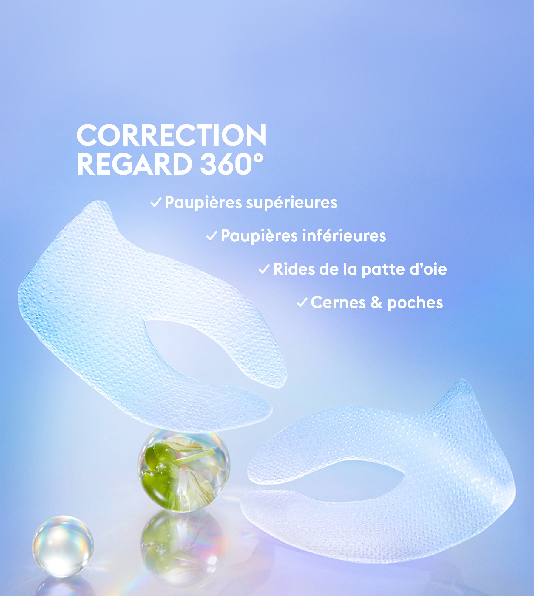 Leur forme pince 360° épouse parfaitement les paupières supérieures et inférieures pour une correction intégrale du contour de l’œil et une réduction prouvée des rides, des paupières tombantes et des cernes.